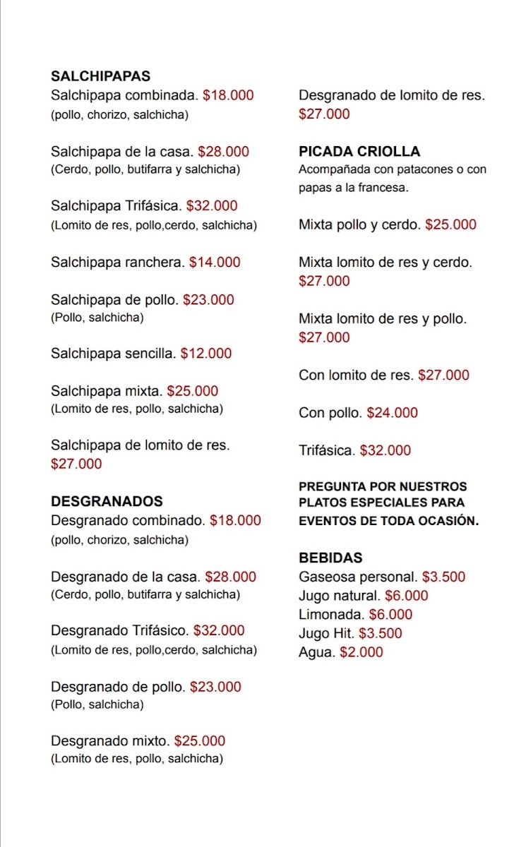The Salchipapas selection stands out, boasting combinations that range from classic to ambitious mixes of beef, pork, chicken, chorizo, and butifarra, perfect for sharing or a filling meal on their own. Customer praise highlights the freshness of ingredients, the warm, homey atmosphere, and notably, the impeccable timing of delivery.